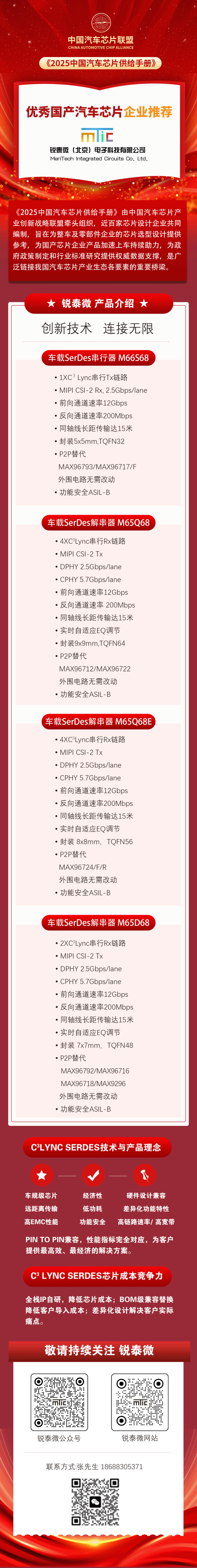 锐泰微车规级产品入编《2025中国汽车芯片供给手册》